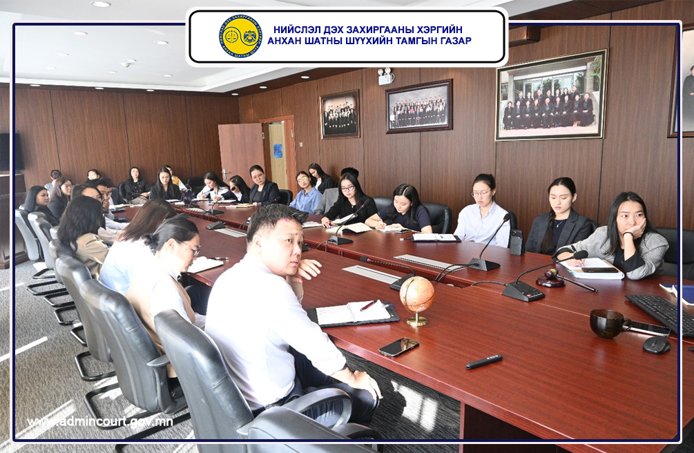 Нийслэл дэх Захиргааны хэргийн анхан шатны шүүхийн Тамгын газрын төлөвлөгөөнд тусгагдсан албан хаагчийг чадавхжуулах дотоод сургалтыг 2025 оны 09 дүгээр сарын 23-ны өдөр зохион байгуулаа.