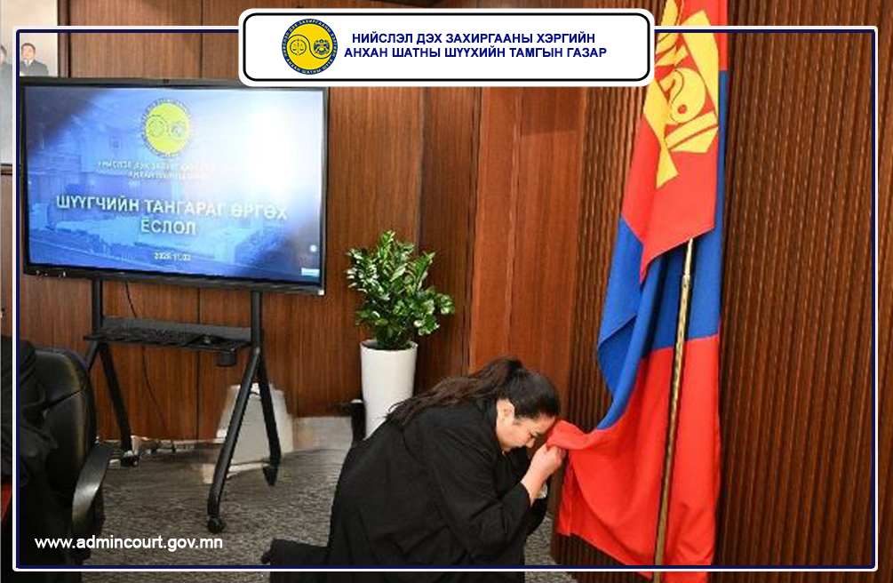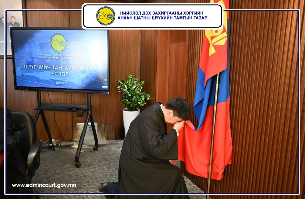 Монгол Улсын Ерөнхийлөгчийн 2025 оны 10 дугаар сарын 20-ны өдрийн 154 дүгээр зарлигаар Нийслэл дэх Захиргааны хэргийн анхан шатны шүүхийн шүүгчийн албан тушаалд Б.Анхбаяр, Ц.Должинсүрэн нарыг томилж, шүүгчийн тангараг өргөх ёслолын ажиллагааг 2025 оны 11 дүгээр сарын 03-ны өдөр тус шүүхийн байранд зохион байгуулав.