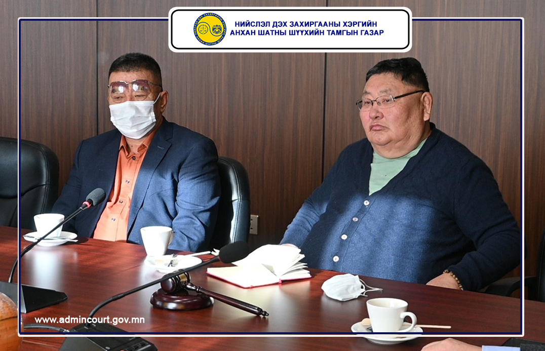 Нийслэл дэх захиргааны хэргийн анхан шатны шүүхийн Тамгын газрын дэргэдэх Ахмадын салбар зөвлөлийн хуралд тэргүүн Ц.Батсүрэн тус салбар зөвлөлийн гишүүн Д.Тайванхүү, Ө.Хажидмаа, Ч.Баярхүү Б.Тунгалаг, Хүний нөөц, дотоод ажил хариуцсан шинжээч А.Соёлоо нар оролцлоо.