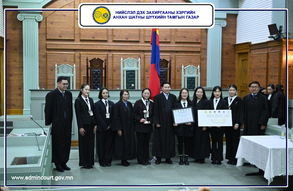 Хууль зүйн салбарын ирээдүй болсон оюутан залуусын онолын мэдлэгийг практиктай холбох, мэтгэлцэх ур чадварыг хөгжүүлэх зорилготой Авлигатай тэмцэх газар үүсгэн байгуулагдсаны 20 жилийн ойг тохиолдуулан “Чингис хаан” тэргүүн зэргийн одонт, Монгол Улсын шинжлэх ухааны гавьяат зүтгэлтэн, Хууль зүйн шинжлэх ухааны доктор (SC.D), академич. С.Нарангэрэлийн нэрэмжит “Mock Trial-2026” эрүүгийн хэргийн шүүхийн мэтгэлцээний тэмцээн 2026 оны 03 дугаар сарын 28-ны өдөр амжилттай зохион байгуулагдлаа.