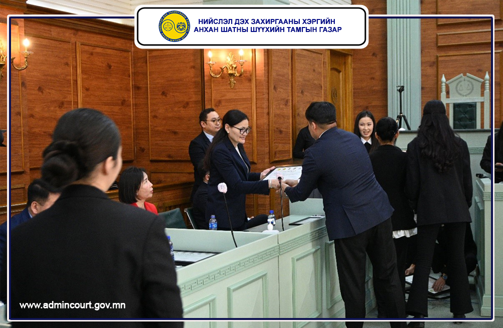 Тус тэмцээний хамтран зохион байгуулагчаар Нийслэл дэх Захиргааны хэргийн анхан шатны шүүхийн Тамгын газар ажиллаж, ирээдүйн хуульчдыг дэмжин оролцов.