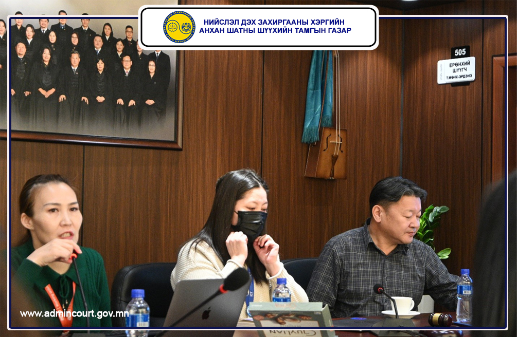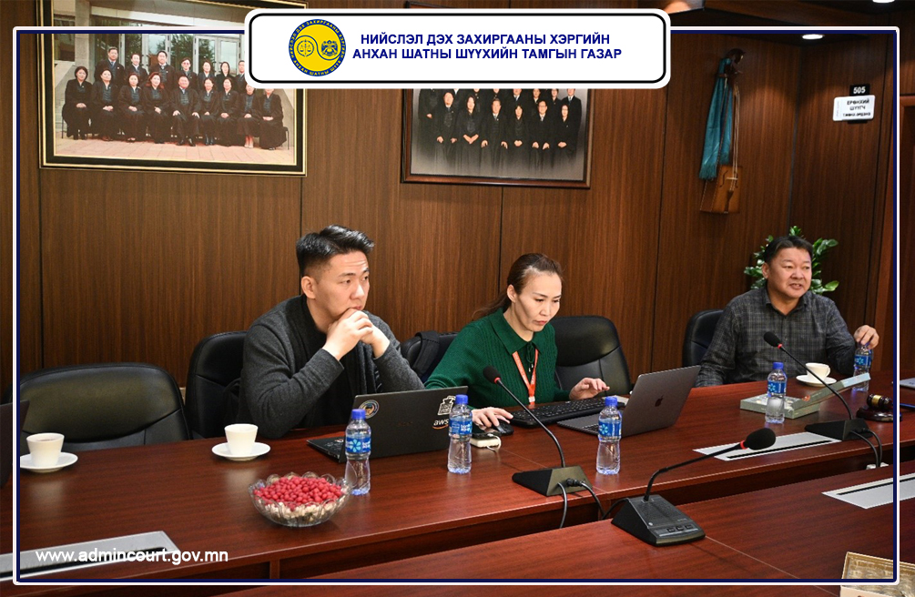 Тус уулзалтад Нийслэл дэх Захиргааны хэргийн анхан шатны шүүхийн Ерөнхий шүүгч Т.Мөнх-Эрдэнэ болон зарим шүүгч нар байлцаж, Нийслэл дэх Захиргааны хэргийн анхан шатны шүүхийн Тамгын газрын дарга, хэлтсийн дарга, мэдээлэл технологийн мэргэжилтэн, бичиг хэргийн эрхлэгч, архивч нар холбогдох туршилтыг хийж зөвлөгөө өгч хамтран ажиллаж байна.