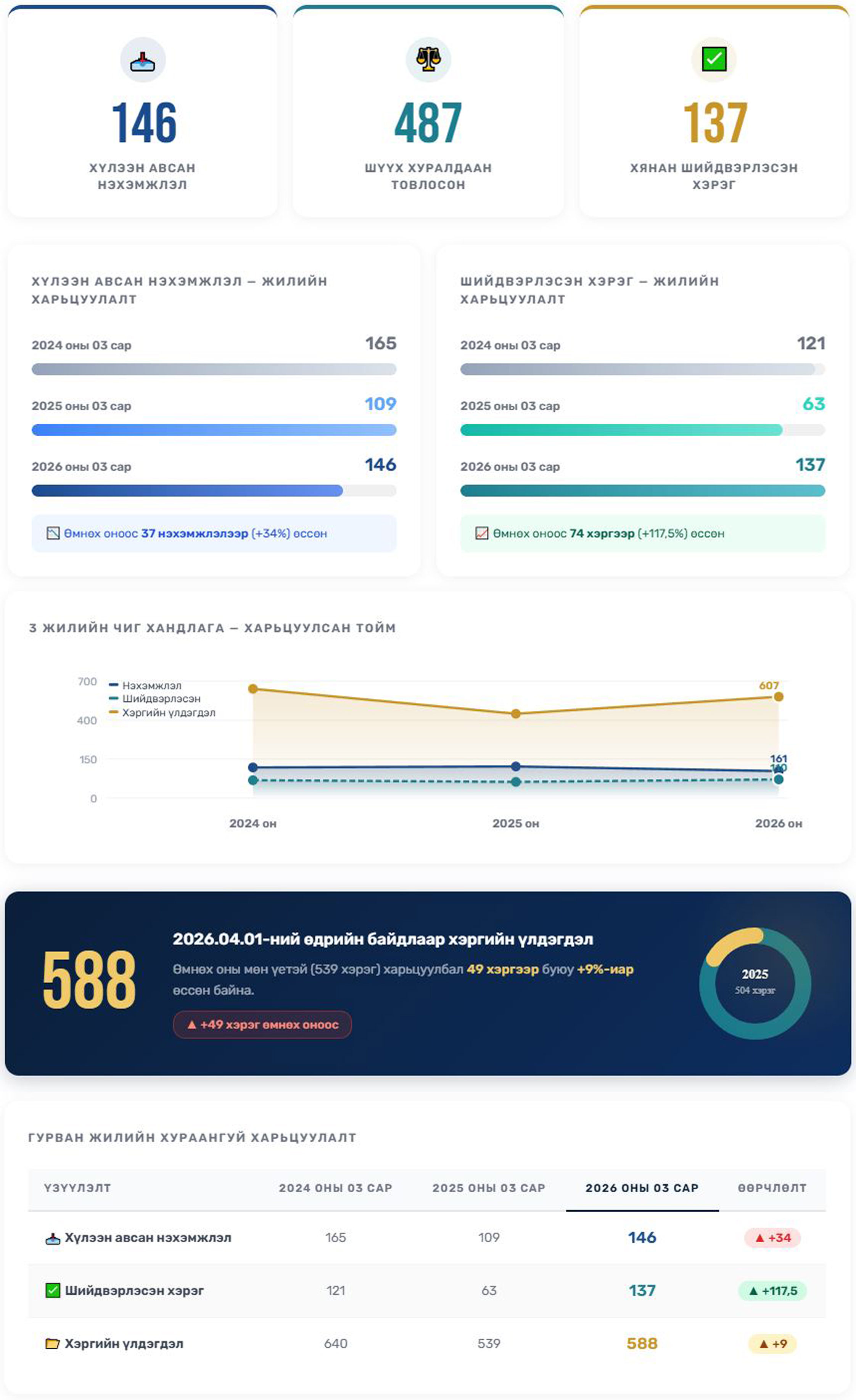 НИЙСЛЭЛ ДЭХ ЗАХИРГААНЫ ХЭРГИЙН АНХАН ШАТНЫ ШҮҮХИЙН 2026 ОНЫ 03 ДУГААР САРЫН ШҮҮН ТАСЛАХ АЖИЛЛАГААНЫ МЭДЭЭ