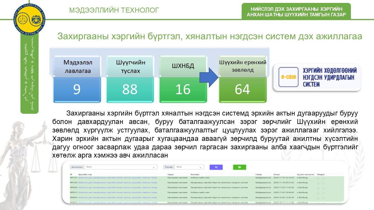 Монгол улсын шүүхийн нэгдсэн мэдээлэл